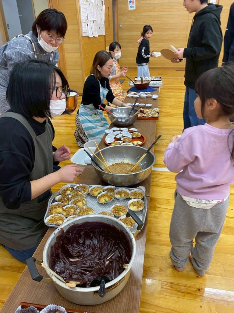 保護者の皆さんが準備してくれた、いろんな種類の餅料理をおいしくいただきました。