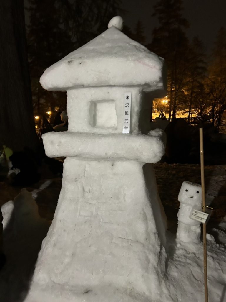 米沢市の冬の風物詩「第49回上杉雪灯篭まつり」に協力して、恒武館の子供たちも「稽照殿」前に雪灯篭を1基作りました。