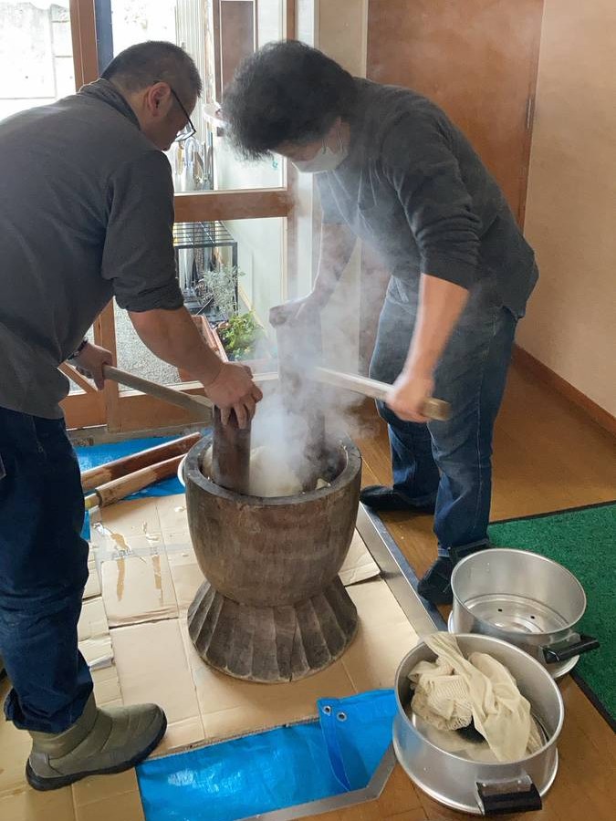 今年も健康で稽古ができるよう、みんなで力いっぱい餅つきをしました。